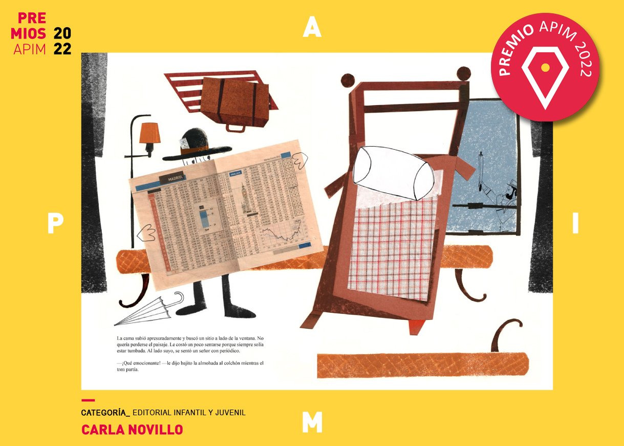 Premio otorgado por la Asociación de Profesionales de la Ilustración de Madrid (APIM) en la categoría Editorial Infantil y Juvenil por el álbum ilustrado Mi cama se va de excursión (publicado posteriormente como La excursión).